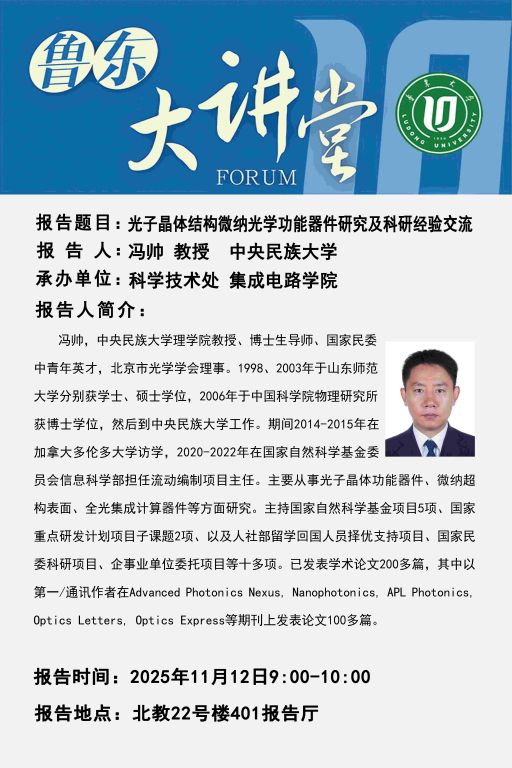 下一条:超短光脉冲产生与阿秒科学之旅【2025年11月11日15:00】