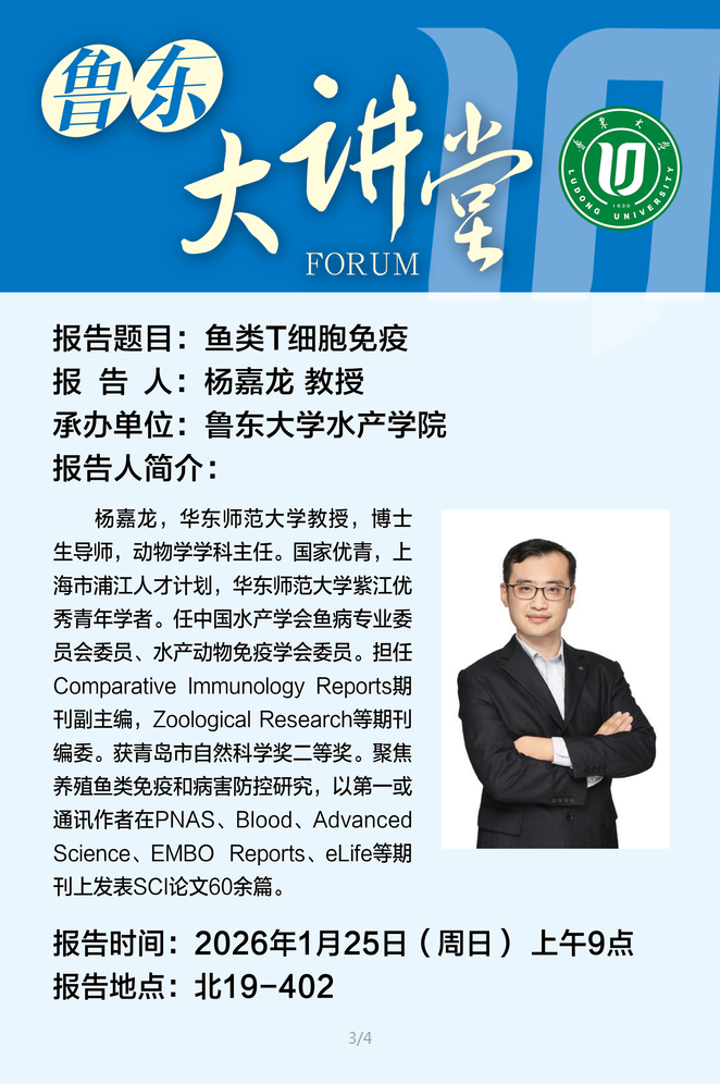 上一条:鲁东大讲堂预告丨环境调控灵芝三萜生物合成机制的解析【2026年1月29日9:00】