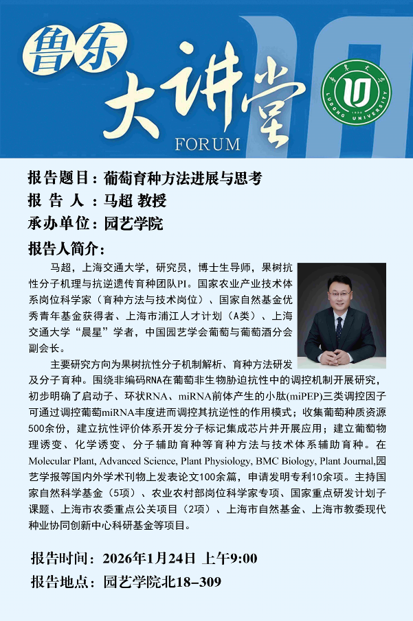 上一条:鲁东大讲堂预告丨鱼类T细胞免疫【2026年1月25日9:00】
