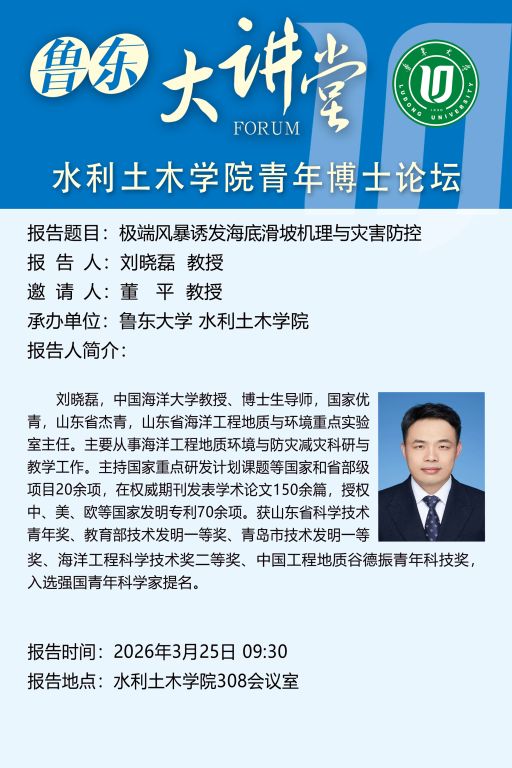 下一条:鲁东大讲堂预告丨水动力及泥沙输运的数值模拟在海岸工程中的应用【2026年3月25日9:00】