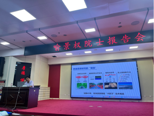 报告中,喻景权详细介绍了我国蔬菜发展的现状及存在的问题,针对“产量低、连作难、效率低”三大难题,提出要深入研究蔬菜生长发育、植物根系化学生态、植物光信号和无土栽培新方法,解决蔬菜领域“卡脖子”技术难题。他指出,要以科技创新推动产业创新,特别是以颠覆性技术和前沿技术催生新产业、新模式、新动能,发展新质生产力。喻景权强调了学习科学家精神、建设科技强国的重要性,并勉励师生以国家需求为导向,以“科技强农”为目标,以踏实的工作作风,解决国计民生重要“卡脖子”问题,以“把论文写在大地上”的情怀,服务乡村振兴国家战略。